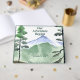 The deep forest green and emerald green colours used in the design give it a natural, rustic feel, perfect for a backwoods country wedding or a nature camping adventure. With towering mountain pine trees in the background, this design is sure to transport you and your guests to a serene forest setting.