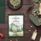 The deep forest green and emerald green colours used in the design give it a natural, rustic feel, perfect for a backwoods country wedding or a nature camping adventure. With towering mountain pine trees in the background, this design is sure to transport you and your guests to a serene forest setting.