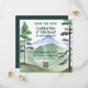 The deep forest green and emerald green colours used in the design give it a natural, rustic feel, perfect for a backwoods country wedding or a nature camping adventure. With towering mountain pine trees in the background, this design is sure to transport you and your guests to a serene forest setting.