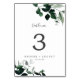 This emerald greenery table number is perfect for a boho wedding. The elegant yet rustic design features moody dark green watercolor leaves and eucalyptus with a modern bohemian woodland feel. The card prints on the front and back (double-sided). Items are printed exactly as they appear on your screen when you add to cart, so personalise and add each table number that you need to your cart individually.
