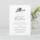 This emerald greenery wedding reception invitation is perfect for a boho post elopement party. The elegant yet rustic design features moody dark green watercolor leaves and eucalyptus with a modern bohemian woodland feel. RSVP cards are sold separately, or you can add RSVP info to the back of the card.