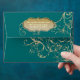Emerald and Metallic Gold Vintage Art Deco Peacock Wedding Invitations