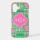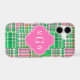 Emerald Hot Pink Preppy Patchwork Madras Monogram