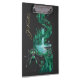 A sleek and functional clipboard featuring a striking beetle design set on a vibrant emerald island. The deep black background enhances the rich green tones, creating a bold and elegant contrast.