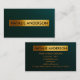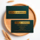 Stand out with timeless sophistication using this emerald green faux leather business card. Highlighted by a sleek gold foil name bar and minimalist layout, it projects professionalism and modern luxury. Perfect for interior designers, real estate agents, beauty professionals, or upscale creatives who want their brand to reflect refinement and style. Easily personalise with your details for a custom, high-end look.