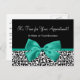 Make a fashion statement with these trendy black and white leopard print salon appointment reminder postcard with a girly emerald green ribbon tied into a chic bow. Personalise this stylish appointment reminder by adding your business name and contact information to the customisable template areas. This is part of the Animal Print Fall Fashion Collection. Flat printed image, not actual ribbon.