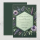 Embrace an enchanted woodland affair with this exquisite design. A rich, dark green background sets a moody and sophisticated tone, adorned with lush botanical illustrations. Sprays of lavender and periwinkle lupine, delicate asters, and varied green foliage create a beautiful arrangement. This elegant and naturalistic composition is perfect for a romantic, nature-inspired union.