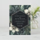 This design features a dramatic composition of deep emerald foliage and elegant white blooms, creating an atmosphere of sophisticated botanical romance. The rich green tones are complemented by hints of darker accents and the striking presence of creamy white orchids. It evokes a moody yet luxurious feel, perfect for a distinguished occasion.