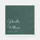 Minimalist emerald script napkins. A classic design that features the happy couple's names set in an elegant script above their special date. Perfect for weddings, engagements, and anniversary celebrations. Designed by Thisisnotme©