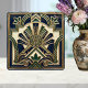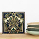 Emerald Navy Gold Art Deco Sun Rays Geometric Ceramic Tile