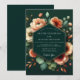Embrace a moody and romantic atmosphere with this stunning artistic floral design. A deep emerald background makes the delicate blooms pop in shades of soft peach, warm apricot, and creamy ivory. Lush, painterly poppies and peonies are artfully arranged with muted green foliage, creating a sophisticated and dramatic botanical masterpiece for your special day.