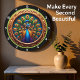 Immerse yourself in the majestic beauty of the Emerald Peacock Radiant Heritage clock. This exquisite timepiece features a high-definition graphic centered on a regal peacock displaying its magnificent plumage in a vibrant, symmetrical fan. The design showcases a brilliant palette of royal blues, emerald greens, and fiery oranges, with each feather "eye" meticulously detailed to create a sense of shimmering depth. The central figure is framed by a warm, copper-toned circular border featuring a complex braided texture that adds a touch of artisanal elegance. While the artwork masterfully mimics the dimensional textures of fine mosaic work and hand-carved wood, this is a durable high-definition graphic application on a premium round clock face. It serves as a prestigious and mesmerizing focal point for any sophisticated interior.