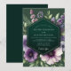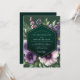Evoke an air of moody romance with this elegant botanical design. A deep emerald green background provides a dramatic canvas for a lush arrangement of flora. Painterly anemones in shades of plum, amethyst, and white bloom alongside delicate lavender sprigs and verdant fern leaves, creating an enchanting and sophisticated atmosphere for your special day.