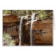 One of the famous sights of Zion National Park is the series of Emerald Pools. This picture shows the waterfalls which flow from the Middle Emerald Pool into the lower one from almost underneath the falls. Also featured as the widescreen wallpaper "Emerald Pool Falls IV" from the National Parks section of MLeWallpapers.com. Check out our store for more landscape photos from Zion National Park and other scenic US National Parks.