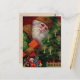 Santa is laden with a bag of toys and lots of Christmas cheer. An adjoining tree is festooned with glimmering beads and glowing candles. Santa wishes everyone a Merry Christmas in golden lettering. The vibrant colours and elaborate detail of this Victorian postcard provide a perfect image for your holiday correspondence and decorative items.