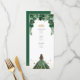 Add a touch of sophistication to your celebration with this elegant emerald green quinceañera menu card. Featuring a regal princess in a sparkling green gown, golden butterflies, and lush watercolor roses, this menu design is perfect for showcasing your appetizers, mains, and desserts in style. Personalise easily with your event details for a stunning table display that complements your quince décor.