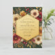 Evoke a sense of opulent romance with this stunning botanical design. A deep emerald green background provides a dramatic canvas for a lush arrangement of florals. Creamy peonies, golden yellow roses, and rich crimson anemones bloom alongside vibrant red berries and delicate greenery. This moody and elegant composition is perfect for an autumn or winter union.