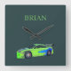 Emerald Roadrunner of the Verdant Horizon Square Wall Clock