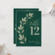 These beautiful wedding table number cards feature a modern design with a sprig of sage green leaves on a marbled emerald green background. The lettering is done in modern script font and the hand painted watercolor foliage or vines gives the card a rustic yet elegant feel. Wonderful way to add beauty and class to your wedding reception while helping your guests to find the correct table.