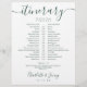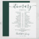 This stylish emerald green and white wedding itinerary schedule-timeline can be personalised with your wedding details in chic lettering. Designed by Thisisnotme©