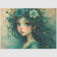 Meet Emerald Starlight, a dreamlike portrait that blends ethereal fantasy with painterly charm. Her ocean-green hair twinkles with golden stars and roses, evoking a sense of otherworldly wonder. Perfect for furniture accents, wall art, or mixed-media creations that call for magic and mood in equal measure.