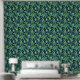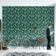 A seamless preppy pattern featuring shades of green and blue floral elements set against a black background. The design combines vibrant foliage with a dark backdrop to create a striking and elegant visual effect.