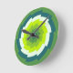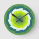 This image features a vibrant spiral kaleidoscope pattern created with jagged, interlocking shapes radiating from the centre in concentric circles. The colour palette is primarily composed of various shades of green and teal, creating a lively, energetic, and almost hypnotic visual effect. The repeating circular geometry, combined with the bold, zigzag edges, gives it a dynamic, modern, and slightly psychedelic feel.