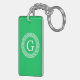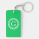 Emerald Wht Greek Key Rnd Frame Initial Monogram Key Ring