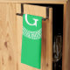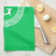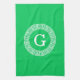 Emerald Wht Greek Key Rnd Frame Initial Monogram Tea Towel