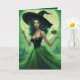 Whimsical and spooky seductress the Emerald Witch holding her emerald green mini pumpkin looking for the little weasel man who jilted her for baking him and unripened pumpkin pie. When she finds him she will put a curse on his hair to never grow again unless it comes in emerald green.