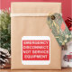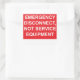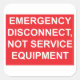 An EMERGENCY DISCONNECT, NOT SERVICE EQUIPMENT sticker label for electricians to use to satisfy the requirements of Article 230.85(E)(1) and (2) in the 2023 National Electrical Code.