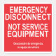 A sheet of six, 3" x 3" EMERGENCY DISCONNECT, NOT SERVICE EQUIPMENT sticker labels with Spanish subtitles for electricians to label electrical services. Desconexión de emergencia, no equipo de servicio
