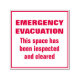 Hosting annual emergency drills and developing an evacuation plan helps ensure the safe and efficient evacuation of people in emergency situations like fire, power outage, severe weather or bomb threats. Each building and tenant must have a plan for both partial relocations and full evacuation. Fire departments depend on floor suite wardens to evacuate and guide employees and tenants to the refuge safe area. This rubber stamp allows you to create your own notes to help alert firefighters that closed door rooms (office, kitchen, restroom, reception area, elevator lobby and conference room) has been searched and cleared, giving them more time to react and handle the emergency.