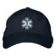 A stylish medical style star of life embroidery presented on a fine custom embroidered baseball cap.