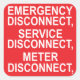 A sheet of six, 3" x 3" EMERGENCY DISCONNECT, SERVICE DISCONNECT, METER DISCONNECT sticker labels for electricians to use when identifying electric service equipment.