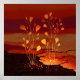 Light-filled plants sprout from dry ground under a dark sky. A simple statement of persistence in tough conditions.