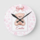 Emilia | Custom Pink Teddy Bear Nursery Design Round Clock