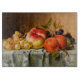 A charming vintage glass cutting board featuring fruits, painted by Emilie Preyer