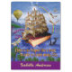 Emily Dickinson's poem that begins, "There is no Frigate like a Book To take us Lands away" is imagined in a fantasy scene with this original design. The quote appears at the bottom, below a masted sailing ship made of an antique book.