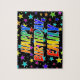 This fun and lively birthday-themed jigsaw puzzle design has the message "HAPPY BIRTHDAY, EMILY" with the characters having a colorful rainbow spectrum inspired gradient pattern, along with a vibrant star field background pattern. An exciting puzzle like this might be a fun way to send a birthday greeting message to somebody named Emily. [~Z0000468]