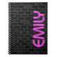 EMILY name in glowing pink marquee neon lights on city brick wall.