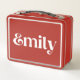 Crafted from high-quality metal, this lunchbox is built to last while offering plenty of space to hold sandwiches, snacks, drinks, and even sweet treats. The sleek yet playful design stands out thanks to the bright white lettering of the name Emily, offering a cheerful vibe that’s as modern as it is timeless. The vibrant contrast makes this lunch pail easy to spot in a sea of school bags or break room shelves, while the sturdy latch ensures all your goodies stay safe and secure until it's time to eat. Whether it's nestled in a backpack or carried by hand, this lunchbox is the perfect companion for busy days filled with classes, meetings, or adventures.