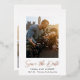 Elegant wedding save the date card featuring a simple and minimal design with "Save the Date" in a modern typography along with your event details below your favourite vertical photo. The back has a second picture along with an optional line of text over the bottom of the picture. The header "Save the Date" is in real foil and the remaining text is black and white; both may be changed in the design editing tool. This design is great whether you are having an informal or formal wedding.