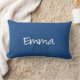 Emma pillow, personalised monogram style name in white on Classic Blue, for purple, green, red, pink, black, orange, yellow, brown, grey or any other colour, click on the 'Customise It' tab. The name Emma in modern script on a high quality cotton or polyester throw pillow. Made in the USA, machine washable, insert included.