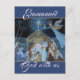 Inspirational quote Christmas postcard depicts the birth of Jesus in a beautiful nativity scene with the caption, Emmanuel God with us. The back features Bible Verse Matthew 1:23, “Behold, the virgin shall be with child, and bear a Son, and they shall call His name Emmanuel,” which is translated, “God with us.” The scripture and greeting can be personalised to the details of your choice.~