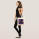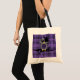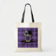 Custom Budget Tote has a cute vector art design of an emo owl with black hair and a skull bow on a branch and a purple plaid pattern background.
