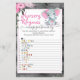 Nursery Rhymes fun Emoji Pictionary baby shower game with wooden rustic background and cute little girl elephant and watercolor flowers.