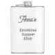Add a touch of humour and personalisation to your essentials with this stylish stainless steel hip flask featuring the phrase “Emotional Support Elixir” and a customisable name at the top. Whether it’s for a bachelorette party, birthday gift, or just a fun way to carry your favourite drink, this sleek and durable flask makes the perfect companion. The classic design with elegant black typography on a white background makes it both chic and practical.