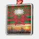Empire St Bldg Sunset NYC Red Green Damask Xmas #2 Metal Ornament