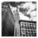 This fine art photo features a black and white view of the dramatic architecture of the Empire State Building, one of New York City's most popular skyscrapers and two other skyscrapers that make up the New York City skyline. Standing against beautiful white clouds, the skyscrapers look majestic and powerful making this a classic, timeless cityscape of Manhattan.